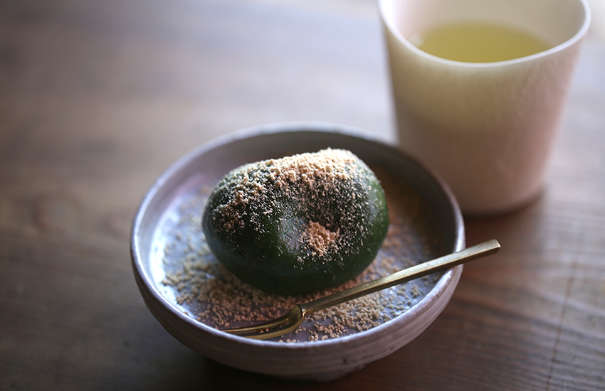 春いちばんの、お楽しみ。草餅がオンラインショップに登場です。別添えきな粉を、ふわりと纏わせてどうぞ。
