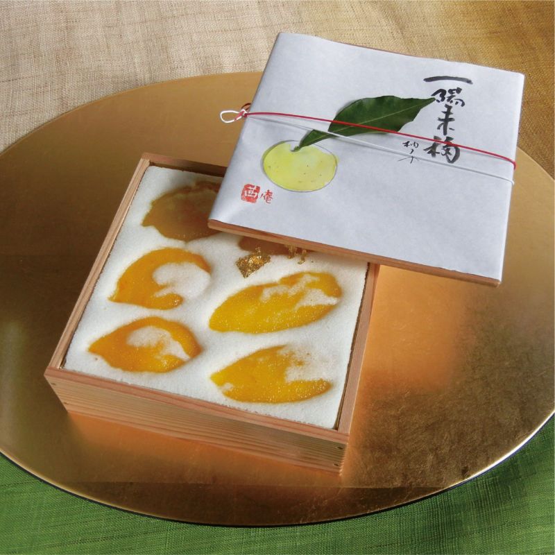 希少な北川柚子の手剥き皮で仕立てる、特別な一品。生菓子ですので お日保ちが短いお品ものですが、端麗な一口と美しい景色は、このお菓子ならでは。