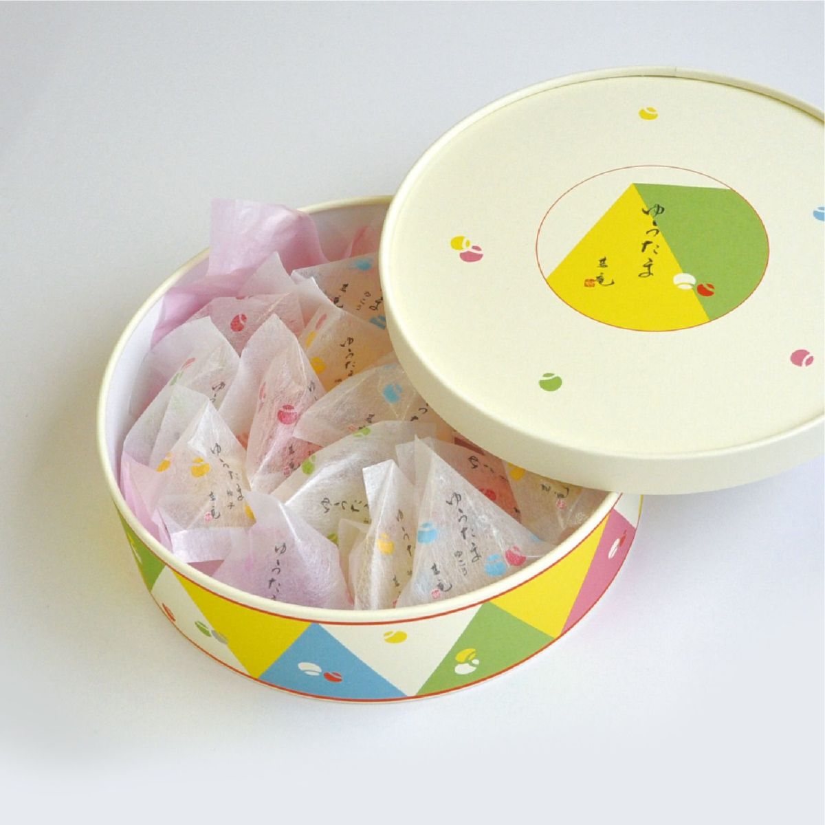 モダンな印象の「ゆうたま」ですが、実は茶道の場でもご指名いただくことが多いお菓子。理由は、和の伝統を踏襲した本格派だから。愛らしい五つの色は、「五節句」がモチーフ。