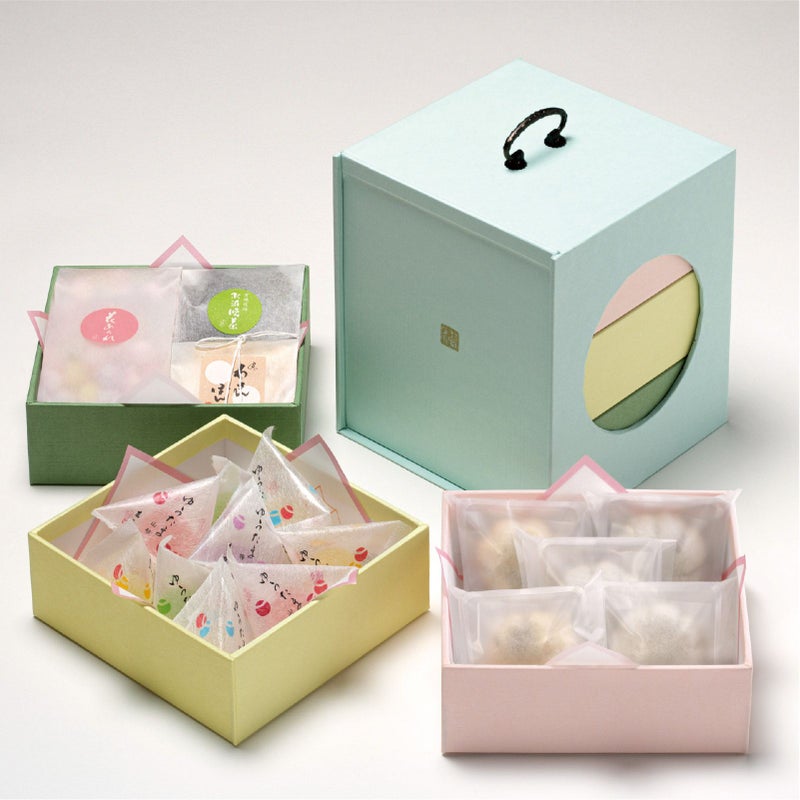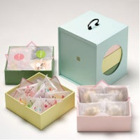 赤ちゃんの愛らしい手をイメージした上用まんじゅう。お菓子を召し上がったあとも、長く手元においてお楽しみいただける三段箱は、贈り主の心遣いもきっと伝わる一品です。