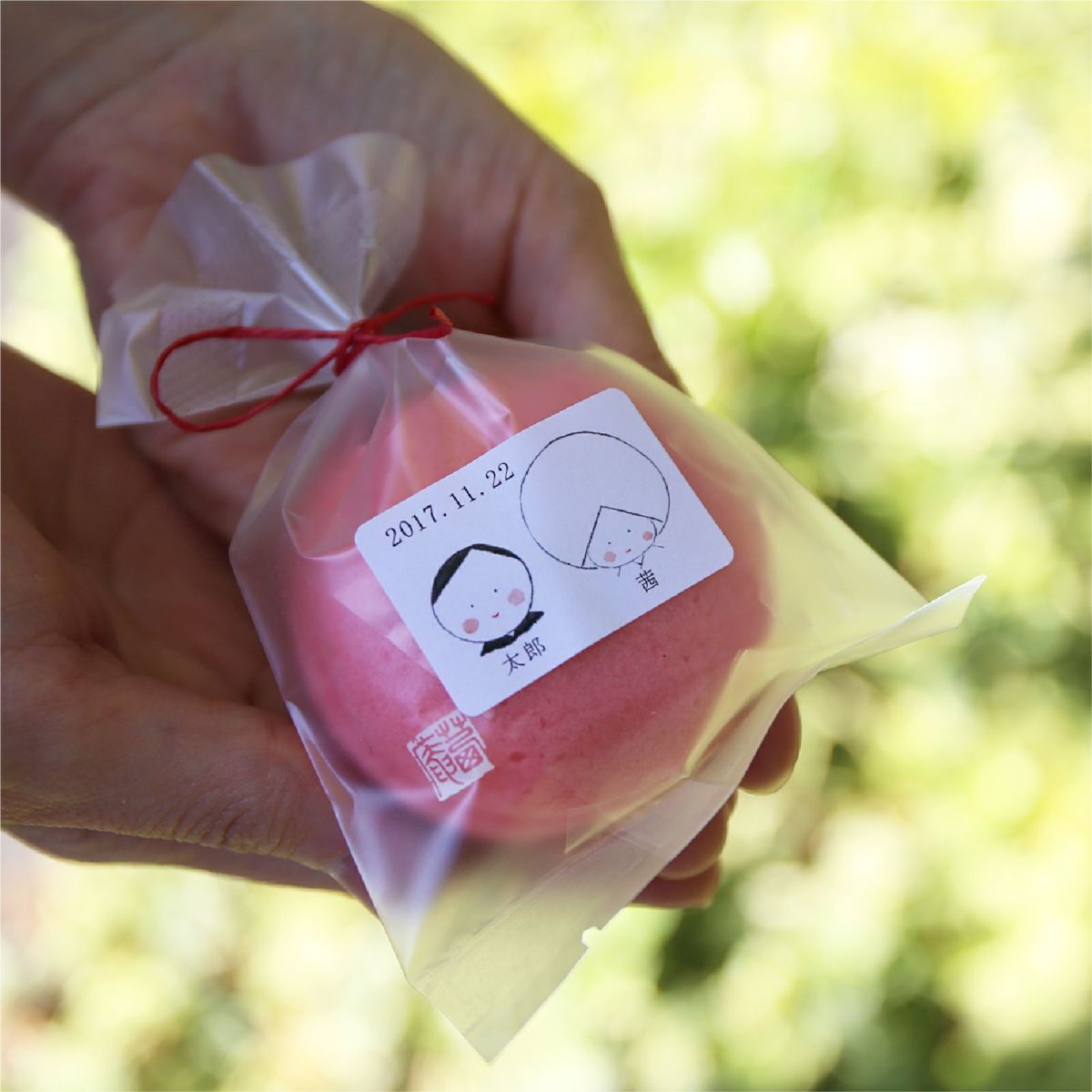 プチギフトには、挙式日とお二人の名前を入れた、オリジナルシール*のご用意が可能です。