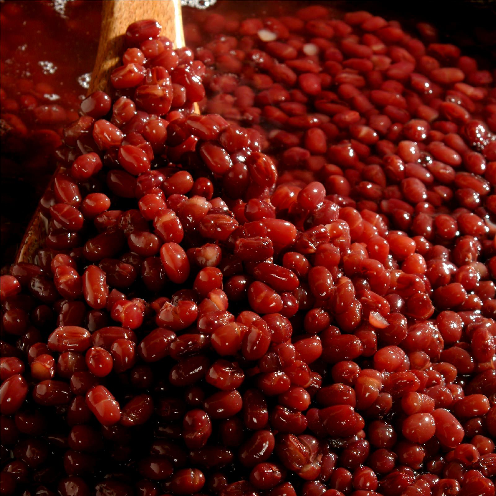 小豆とお餅、最高の相性の二人。お互いの持ち味が引き立つよう、慎重に仕上げます。とろとろと水挽きで仕立てた求肥餅にあわせるのは、大粒の丹波大納言小豆。
