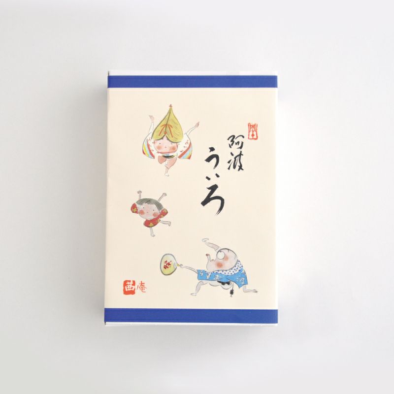阿波徳島にちなんで、繊細な藍染のグラデーション入れたパッケージ。優しい手触りも嬉しい、大人のおやつ菓子です。