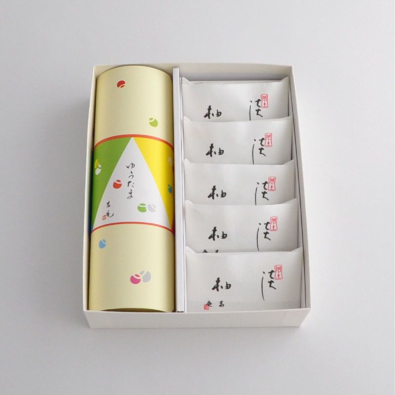 茜庵の代表銘菓「淡柚」と、人気の一口菓「ゆうたま」のアソート。淡柚とゆうたまの組み合わせは、一番人気の一品です。お日保ち長めも、嬉しいポイント。