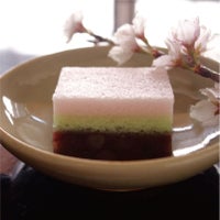 艶やかに炊きあげた大納言小豆に、桜葉をしのばせてた三層の蒸し菓子。ほのかな塩気もまた春の気分。